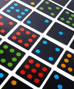 Jak się gra? Gra składa się z czterech talii w różnych kolorach, z kartami od 1 do 9, na których znajdują się kropki. Uczestnicy tasują swoje talie i układają je zakryte przed sobą. W każdej rundzie bierzemy wierzchnią kartę z talii i umieszczamy ją na planszy, w kwadracie 6×6. Karty można kłaść na wolnych polach lub na innych kartach, pod warunkiem, że na dodawanej karcie znajduje się więcej kropek. Naszym celem jest ułożenie w rzędzie pięciu kart.