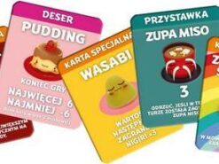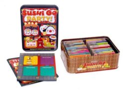 Sushi go party! to samodzielna wersja popularnej, imprezowej karcianki, oparta o znaną z 7 cudów świata mechanikę draftu. Gracze dobierają na rękę tyle samo kart, po czym jedną z nich wybierają, a resztę przekazują dalej. W ten sposób konstruujemy jak najbardziej opłacalne zestawy, kontrolując jednocześnie poczynania przeciwników.