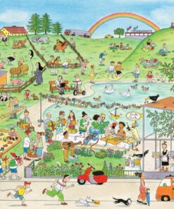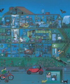 Każda strona to barwna, pełna szczegółów i postaci ilustracja przedstawiająca fragment miasta. Na kolejnych rozkładówkach odnajdujemy tych samych bohaterów w różnych miejscach i momentach dnia i niezliczone historie do odkrywania