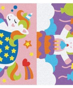Bardzo pomysłowy, kreatywny i wyjątkowy zestaw do kolorowania magicznym piaskiem pochodzącym ze zmielonego marmuru. Praca z piaskiem podczas kolorowania rysunków jest nie tylko szczególnie przyjemna dla dzieci, ale również pozwala im rozwijać wyobraźnie i tworzyć piękne obrazki bez użycia nożyczek, kleju lub farb.