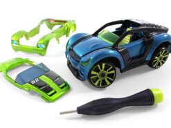 Modarri Delux S2 Uliczny Muscle to wersja samochodu Modarri z dodatkowymi częściami nadwozia (maska samochodu i błotnik) dołączonymi do opakowania, dzięki czemu dziecko od razu po rozpakowaniu Modarri ma jeszcze więcej możliwości budowania swojego niepowtarzalnego auta.
