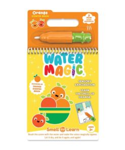 Każda strona wypełni się żywym kolorem, gdy dziecko pomaluje ją wodnym, pachnącym piórem dołączonym do zestawu. Dzieci będą zachwycone, gdy zaczną pojawiać się śliczne obrazki. Książeczka ma cztery strony do pomalowania i jest wielokrotnego użytku. Po wyschnięciu kolorowanki, strona jest znowu biała i zabawę można zacząć od nowa. Dołączony pędzelek ma miejsce do nalania wody, który łatwo napełnić wodą. Pędzelek pachnie słodką pomarańczką. Idealna kolorowanka do zabrania w podróż!