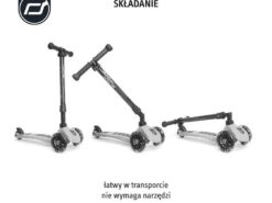Dzięki innowacyjnej możliwości złożenia rączki (w kilka sekund, bez narzędzi, za pomocą jednego guzika), hulajnoga jest bardzo wygodna do transportu i noszenia.