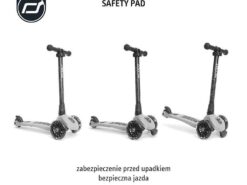 Highwaykick 3 LED został wyposażony w opatentowany, rewolucyjny system safety-pad, tj. specjalną wysuwaną szeroką podkładkę, umieszczoną w dole przedniej części hulajnogi, która zapobiega m.in. przewróceniu się na nierównym terenie czy utknięciu kół.