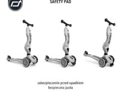 Hulajnoga jest doskonale zbalansowana i stabilna, komfortowa i na dodatek wyjątkowo bezpieczna. Wyposażona została w opatentowany, rewolucyjny system safety-pad – tj. specjalną szeroką podkładkę, umieszczoną w dole przedniej części, która zapobiega m. in. przewróceniu się na nierównym terenie czy utknięciu kół. Jej pozycję w razie potrzeby również można regulować. Scoot & Ride Highwaykick stanie się towarzyszem zabaw Twojego dziecka na wiele lat.