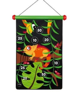 Dwustronne magnetyczne rzutki z motywem Kameleona to bezpieczna zabawa zarówno dla młodszych, jak i starszych wielbicieli rzutek. Gra polega na jak najbardziej precyzyjnym trafieniu rzutkami w tarczę, w miejsca, w których rozmieszczono punkty za każdy oddany rzut. Tarcza jest dwustronna, co pozwala na zabawę na dwa różne sposoby.
