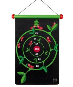 Rzutki wykonano z tworzywa sztucznego ze specjalnie zaokrągloną metalową końcówką, w celu zapewnienia dzieciom maksymalnego bezpieczeństwa. Tarcza wykonana z płótna idealnie mieści się do specjalnie zaprojektowanej tuby, wykonanej z wytrzymałej tektury. Łatwe przechowywanie to dodatkowy atut tej wspaniałej zabawki.