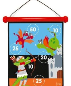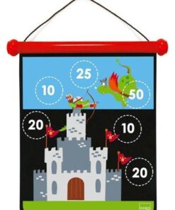 Dwustronne magnetyczne rzutki z motywami Rycerza i Zamku to bezpieczna zabawa zarówno dla młodszych jak i starszych wielbicieli rzutek. Gra polega na jak najbardziej precyzyjnym trafieniu rzutkami w tarczę, w miejsca, w których rozmieszczono punkty za każdy oddany rzut. Tarcza jest dwustronna, co pozwala na zabawę na dwa różne sposoby.