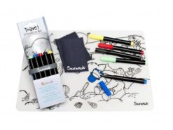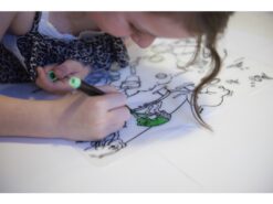 Niezbędnik każdej podroży – silikonowa mata do kolorowania Scrunch! Świetnie sprawdzi się w samochodzie, samolocie, restauracji oraz w domu, gdy pojawi się nuda. Po złożeniu zajmuje niewiele miejsca. W zestawie znajduje się 5 zmywalnych flamastrów oraz szmatka, którą możemy zetrzeć rysunek po zabawie. Kolorowankę możemy wykorzystać także w kuchni jako ochronną podkładkę na stół. Nadruk zaprojektowała słynna duńska artystka Anette Løschenkohl Haslund. .