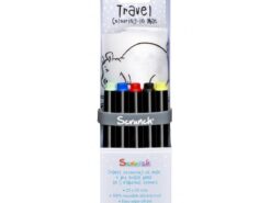– w zestawie 5 nietoksycznych, zmywalnych flamastrów (żółty, zielony, niebieski, czerwony, czarny), szmatka oraz silikonowa opaska do transportu