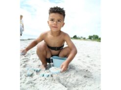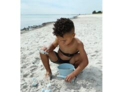 Wyjeżdżasz ze swoją pociechą i nie masz pomysłu jak zmieścić zabawki w jednej walizce? Wybieracie się na słoneczną plażę i macie dość ciężkich, plastikowych zabawek? Mamy dla Was genialne rozwiązanie… Silikonowe foremki Scrunch idealne do zabawy w piasku, wodzie, w czasie kąpieli w wannie. Nie zabierają dużo miejsca w torbie bądź walizce dzięki temu, że można je zgnieść! W zestawie cztery miękkie foremki w kształcie kraba, delfina, muszelki i dziecięcej stópki, całość zapakowana w siateczkę ściąganą sznurkiem.