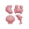 Wyjeżdżasz ze swoją pociechą i nie masz pomysłu jak zmieścić zabawki w jednej walizce? Wybieracie się na słoneczną plażę i macie dość ciężkich, plastikowych zabawek? Mamy dla Was genialne rozwiązanie – silikonowe foremki Scrunch. Idealne do zabawy w piasku, wodzie i w czasie kąpieli w wannie. Nie zajmują dużo miejsca w torbie ani walizce dzięki temu, że można je zgnieść! W zestawie cztery miękkie foremki w kształcie kraba, delfina, muszelki i dziecięcej stópki. Całość zapakowana w siateczkę ściąganą sznurkiem.