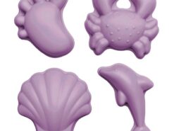 Wyjeżdżasz ze swoją pociechą i nie masz pomysłu jak zmieścić zabawki w jednej walizce? Wybieracie się na słoneczną plażę i macie dość ciężkich, plastikowych zabawek? Mamy dla Was genialne rozwiązanie – silikonowe foremki Scrunch. Idealne do zabawy w piasku, wodzie i w czasie kąpieli w wannie. Nie zajmują dużo miejsca w torbie ani walizce dzięki temu, że można je zgnieść! W zestawie cztery miękkie foremki w kształcie kraba, delfina, muszelki i dziecięcej stópki. Całość zapakowana w siateczkę ściąganą sznurkiem.
