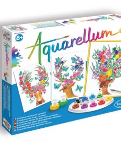 Aquarellum to technika malarska, dzięki której można samodzielnie namalować perfekcyjne obrazy akwarelowe. Elementy obrazków zawartych w zestawie są otoczone lekko wypukłymi konturami, dzięki czemu można prowadzić pędzel, nie wychodząc poza obrys elementu. W miarę zamalowywania kolejnych części obrazka pojawiają się mikromotywy dekoracyjne. Uzyskany efekt daje wrażenie niezwykłej finezji, podczas gdy osiąga się go bez większej trudności. Ułatwienia te pozwalają popuścić wodze wyobraźni kolorystycznej. Za pomocą pipety można na palecie mieszać ze sobą tusze, tworząc tym samym nieskończenie wiele kolorów i odcieni. W zestawie znajduje się podpowiedź jakie kolory ze sobą połączyć aby uzyskać np. brązowy, szary, fioletowy itd. Zestaw Aquarellum to idealna zabawka dla starszych dzieci, producent podaje, że w w wieku od 8 lat, natomiast ogarnięte i lubiące plastyczne zajęcia 6 latki też poradzą sobie z tą zabawką.