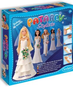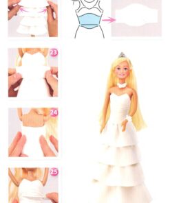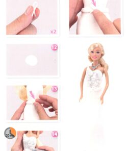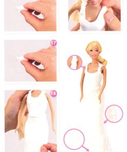 Zabawka plastyczna z lalką typu Barbie o wysokości 28 cm do ubierania w sukni Panny Młodej i do zabawy. Lalka jest plastikowa z długimi włosami i ruchomymi rękami i nogami. Strój Panny Młodej wykonuje się z magicznej, lekkiej masy do modelowania Patarev.