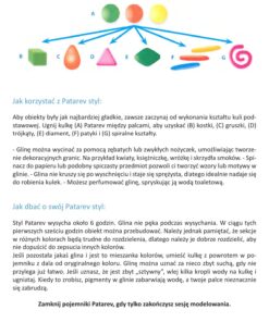 Dziecko rozwałkuje masę Patarev za pomocą dołączonego wałeczka do grubości około 1mm. Do rozwałkowanej masy przyłoży plastikowy szablon, następnie odrysuje kształt stroju syreny na masie według wzoru, za pomocą plastikowego noża. Po ściągnięciu szablonu widać wzór stroju na masie, którą można wtedy dokładnie wyciąć nożyczkami. Dziecko założy lalce otrzymane ubranie. Masa jest jeszcze miękka, można dopasować ogon syreny do kształtu lalki. Ubranie z masy plastycznej jest suche po 15 minutach.