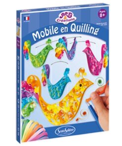 Zestaw kreatywny Ptaki metodą quilling francuskiej marki SentoSphère, to zabawa polegająca na tworzeniu metodą quillingu czyli zwijaniu wąskich pasków papieru i formowaniu ich w odpowiednie kształty, a następnie łączeniu ich z sobą. Dzięki temu możemy stworzyć przepiękne zawieszki z ptaszkami w różnych kolorach. Ptaki mają długie ogonki i czuby na głowach, więc można je pięknie wykończyć. To idealne ćwiczenie motoryki rąk dziecka poprzez ciekawą i kreatywną zabawę!