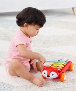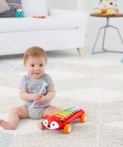 Uroczy lisek z serii Explore & More inspiruje do muzycznej kreatywności ośmioma kolorowymi sztabkami. Zabawka wydaje dźwięk po uderzeniu sztabki, dzięki czemu maluch może skomponować swoją pierwszą melodię. Do cymbałek przymocowana jest pałeczka, która nigdy się nie zgubi i pozostanie zawsze w gotowości by rozwijać muzyczne zdolności dziecka.