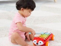 Uroczy lisek z serii Explore & More inspiruje do muzycznej kreatywności ośmioma kolorowymi sztabkami. Zabawka wydaje dźwięk po uderzeniu sztabki, dzięki czemu maluch może skomponować swoją pierwszą melodię. Do cymbałek przymocowana jest pałeczka, która nigdy się nie zgubi i pozostanie zawsze w gotowości by rozwijać muzyczne zdolności dziecka.