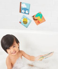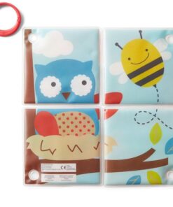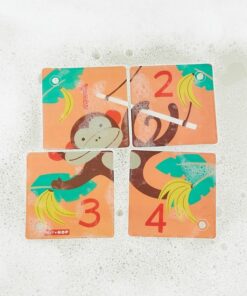 Puzzle kąpielowe i mini książeczka w jednym. Dwustronne elementy podwajają radość: z jednej strony obrazek z przyjazną sówką i pszczółką, z drugiej strony zabawna małpka. Znajdą się nawet cyferki, które wspomogą naukę liczenia. Puzzle unoszą się na wodzie i trzymają się wanny oraz płytek. Dzięki pierścieniowi-zawieszce można je łatwo spiąć i przechować w oczekiwaniu na kolejną kąpiel.