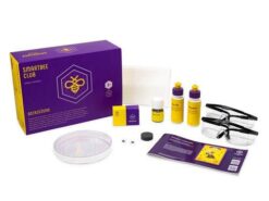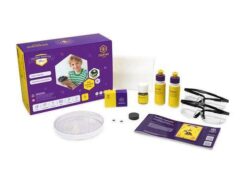 W zestawie znajduje się doświadczenie do wykonania w domu w asyście osoby dorosłej, odczynniki, laboratoryjne komponenty i akcesoria ochronne, a także ilustrowana instrukcja, arkusz obserwacji oraz ciekawostki video.