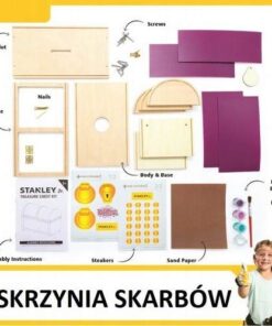 Każdy zestaw Stanley Jr daje Tobie i Twojemu dziecku zabawny, ekscytujący projekt, który pomaga rozwijać zdolności motoryczne i kreatywność oraz pomaga wzmocnić więź między Tobą a dziećmi w Twoim życiu. Podczas wspólnej zabawy możecie stworzyć razem skrzynię skarbów, którą można ozdobić dołączonymi farbami i naklejkami. Małe projekty są dla dzieci idealnym punktem wyjścia do nauki korzystania z narzędzi i umożliwiają im podjęcie w przyszłości bardziej wymagających projektów.