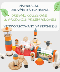 Drewniana stacja kosmiczna będzie idealnie współgrać z pozostałymi kosmicznymi zabawkami: rakietą kosmiczną, robotami i zestawem trzech rakiet.