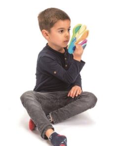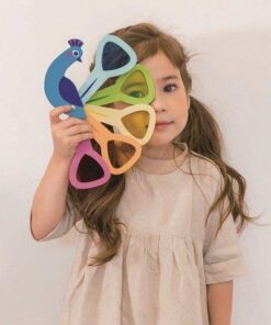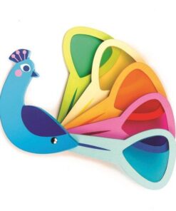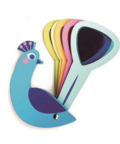 Zaglądaj przez kolorowe szybki (ruchome pióra pawia), aby zobaczyć świat w innych kolorach! Sprawdź jak zmienia się obraz, gdy spojrzysz przez 2 lub 3 szkiełka na raz! Zabawka ułatwia naukę rozpoznawania i łączenia kolorów oraz rozwija wyobraźnię dziecka.