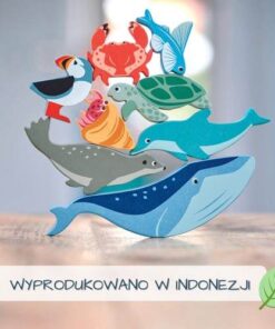 Wśród tych kolorowych zwierzątek morskich mamy między innymi zwinnego delfina, nieśmiałą foczkę, szybkie kraby i latającą rybę! Nie mogło również zabraknąć wieloryba i pingwina – ulubieńca dzieci! Jakie przygody przeżyją w morskich głębinach?