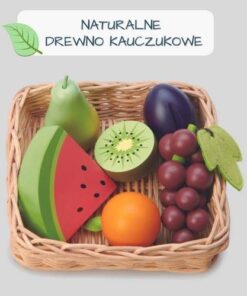 Pięknie wykonane drewniane owoce w plecionym koszyku!