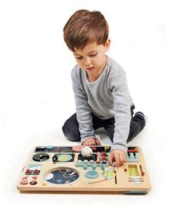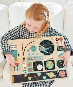 Nasza kosmiczna tablica manipulacyjna będzie idealnym dopełnieniem pozostałych kosmicznych zabawek marki Tender Leaf Toys.