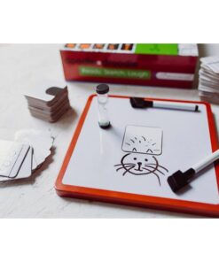 - zawartość: tablica do szkicowania, dwa mazaki z gąbką ścierającą, klepsydra, 108 kartoników droodle, książeczka z podpowiedziami.
