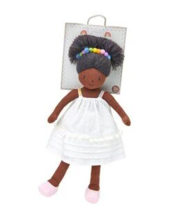 Poznaj Esme – śliczną laleczkę lubiącą się bawić i żartować! Esme ubrana jest w białą, zwiewną sukienkę na tęczowych ramiączkach oraz różowe buciki. Ma czarne włosy zawiązane kolorową gumką w dwa kucyki.