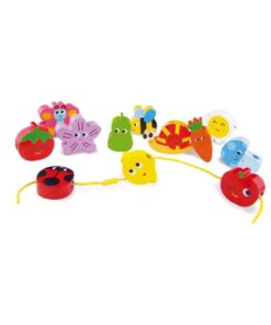 Drewniane klocki Ogród francuskiej marki Vilac, to zestaw różnokształtnych, kolorowych klocków, które można nawlekać lub stworzyć z nich piękny wzór: ogród. Zestaw zawiera 12 kolorowych klocków ze specjalnym, bezpiecznym sznurkiem.