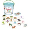 Dzięki zabawie klockami dziecko uczy się rozpoznawać kolory i zwierzątka.