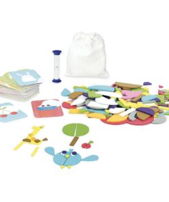 Gra obserwacji i szybkości Whatizis francuskiej marki Vilac, to gra edukacyjna, która pomoże dziecku być kreatywnym i pomysłowym. Zestaw zawiera 250 drewnianych kształtów, 100 kart ze wzorami oraz zegar odmierzający czas. Zasady polegają na odtworzeniu obrazu z karty, a przeciwnicy muszą jak najszybciej odgadnąć, o co chodzi.
