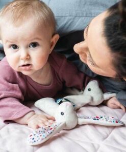 Miękka grzechotka z główką Królisia, idealnie nadaje się do malutkich rączek niemowlaka. Delikatne grzechotanie wspiera rozwój sensoryczny dziecka. Idealna zabawka do pierwszej wyprawki!