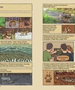 Najnowsza książka Mizielińskich to komiksowy zapis wszystkiego, czego się dowiedzieli. Michał opowie wam w niej, jaka jest struktura wilczych grup, jak duże są wilcze terytoria i po co wilki odbywają dalekie wędrówki. Skomentuje częste mity na temat tych zwierząt i wyjaśni wam, w jaki sposób badacze zbierają informacje: jak tropią wilki i jak je liczą, co potrafią wywnioskować z badania wilczych kup i resztek wilczych posiłków, jak działa fotopułapka, a jak obroża GPS – i jak tę ostatnią wilkowi założyć.
