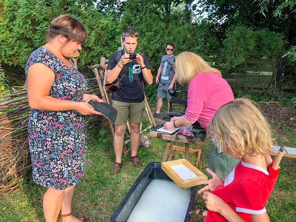 W rezerwacie hodowane są również zwierzęta, stoją tu ule, otacza go bujna roślinność, a na miejscu odbywają się przeróżne warsztaty. My uczyliśmy się czerpać papier (bardzo fajne doświadczenie, nie tylko dla nieletnich) – Leo nie chciał odejść od prasy, musieliśmy się nieźle nagimnastykować, żeby namówić go do ruszenia w dalszą drogę!