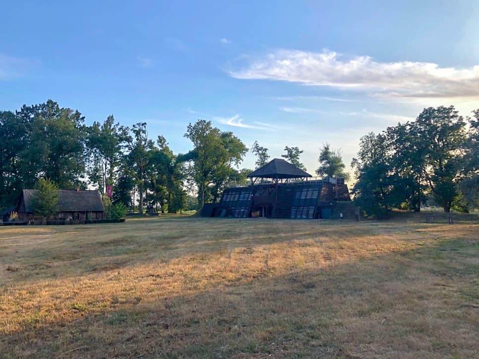 Przeżyłam tu jedną z piękniejszych chwil, zarówno podczas tej wycieczki, jak i chyba w ogóle w życiu. Wiecie, są takie momenty, mgnienia dosłownie, kiedy wszystko się “zgrywa”. Piękny, ciepły i słoneczny dzień, który powoli się kończył. Gród otwarty tylko dla nas. Wspaniały kawał historii podany na talerzu przez najlepszych “specjalistów od średniowiecza w okolicy”. Do tego niezapomniana, staropolska uczta – z gotowaną na ogniu kaszą jaglaną z mięsem i grzybami, z polewką piwną i plackiem drożdżowym… Do tego muzyka z epoki, lekki wiatr, migotanie zachodzącego słońca na dumnie stojących wokół chaty malwach. Wszystko to piękne i na pewno przyczyniło się do tego, że Grzybowo tak doskonale wyryło się w mojej pamięci.