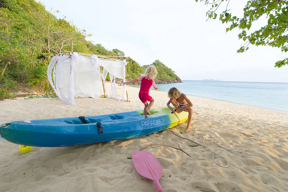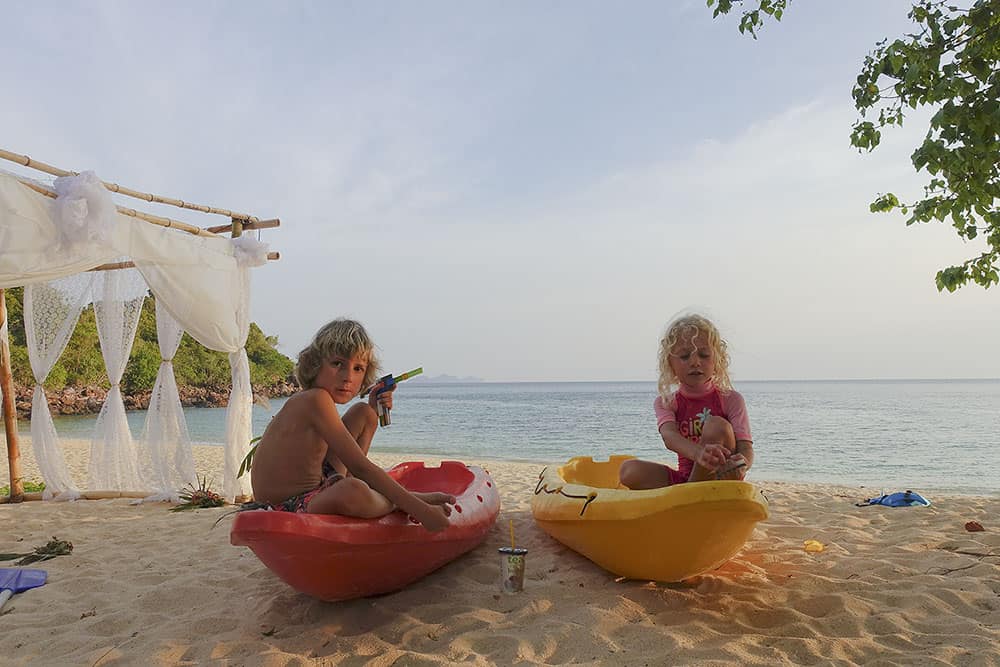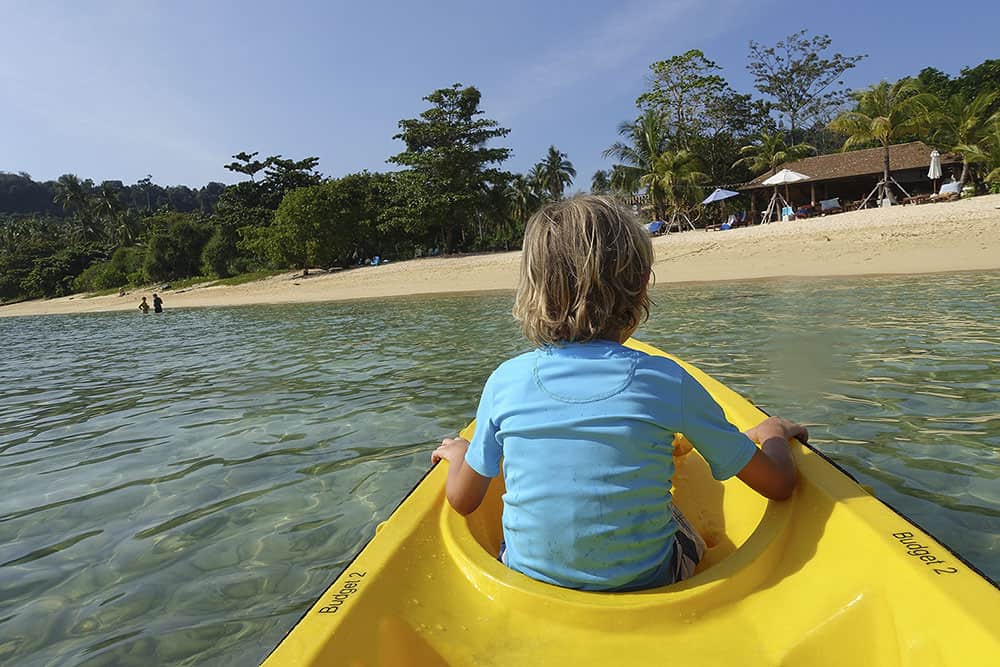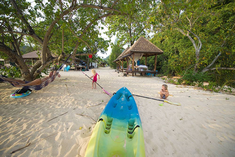 Najlepiej… nic! Chociaż trudno mi w to uwierzyć, ale udało nam się to idealnie. 2 tygodnie w Paradise Beach Resort były najprawdziwszymi wakacjami leniucha, dokładnie tym, czego po męczącym roku potrzebowaliśmy. Było wylegiwanie się w hamaku, budowanie zamków z piasku, sen w cieniu palmy. Przeczytałam 3 książki (słownie: trzy! to absolutny rekord od kiedy podróżujemy stadnie ;)). Były tajskie masaże (bo jak tu nie skorzystać, skoro godzina kosztuje 35 zł!), wypiłam niezliczone ilości świeżych kokosów. A przede wszystkim – kąpiele w ciepłym morzu i snorkeling. Czasem jakiś kajaczek – łagodne morze w zatoce aż się prosi, aby popływać, a na piasku stoją kajaki do dyspozycji hotelowych gości.