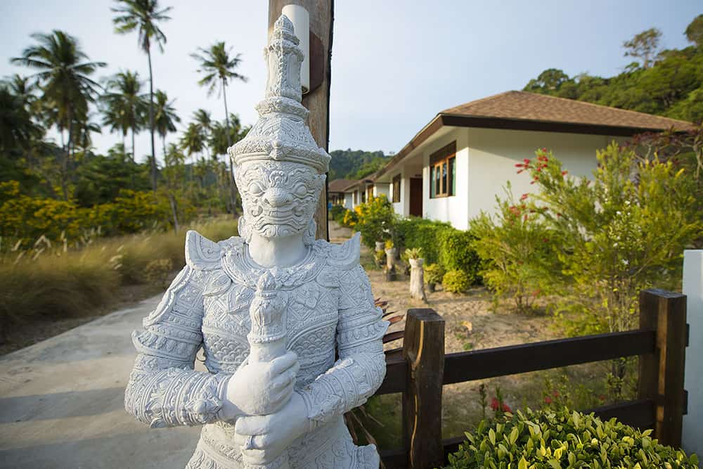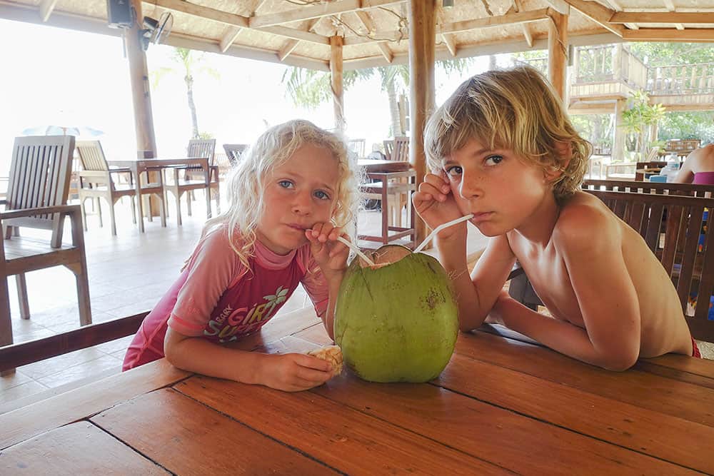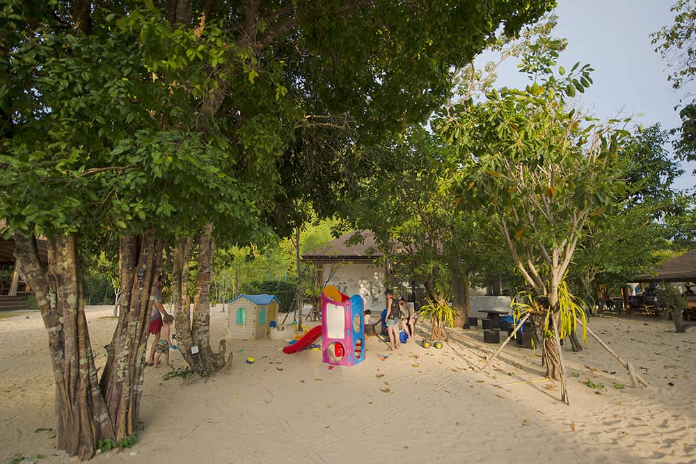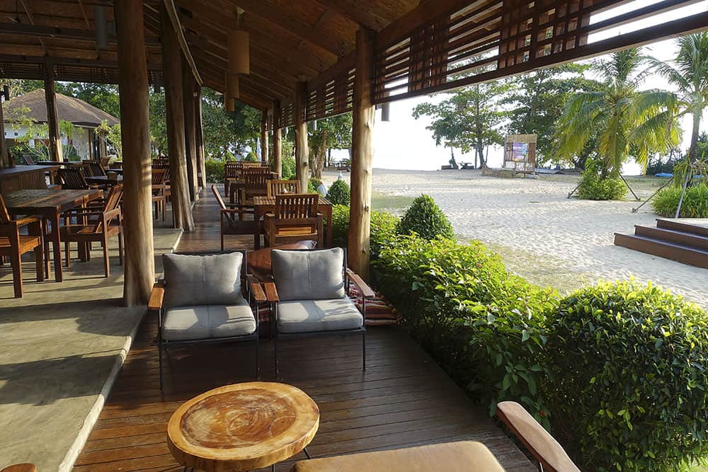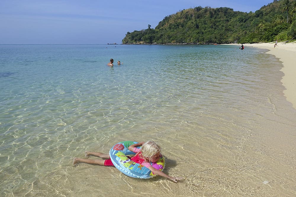 Ma w sobie jednak coś takiego, co przyciąga i sprawia, że czujesz się tam po prostu dobrze. Ja w myślach nazwałam go sobie “wystarczającym” – jest wystarczający pod wieloma względami i zasługuje na polecenie, szczególnie dla rodzin z dziećmi. Ze swoją plażą osłoniętą od fal, z drobnym piaseczkiem (który nie jest aż tak biały i delikatny jak z pocztówek, ale na tyle piękny, że chcesz podziwiać go godzinami). Są hamaki, w których leniwie bujałam nogą popijając świeże kokosy lub soki owocowe. Przesympatyczna obsługa, pomocna i choć słabo mówiąca po angielsku, życzliwa zarówno małym, jak i tym całkiem dorosłym gościom. Jako, że miejsce jest naprawdę trochę oderwane od świata, jedyną dostępną restauracją jest ta hotelowa. Szczęśliwie menu jest ułożone tak, że każdy znajdzie dla siebie coś dobrego. My polubiliśmy się z ich Pad Taiem i smażonym ryżem z krewetkami w ananasie. Dla wybrednych trzylatków są spoko frytki, całkiem dobra pizza i lody. Do tego świeże, słodkie i soczyste owoce w ilościach hurtowych (szczególnie mango, ananas i arbuz – pyyyycha!).
