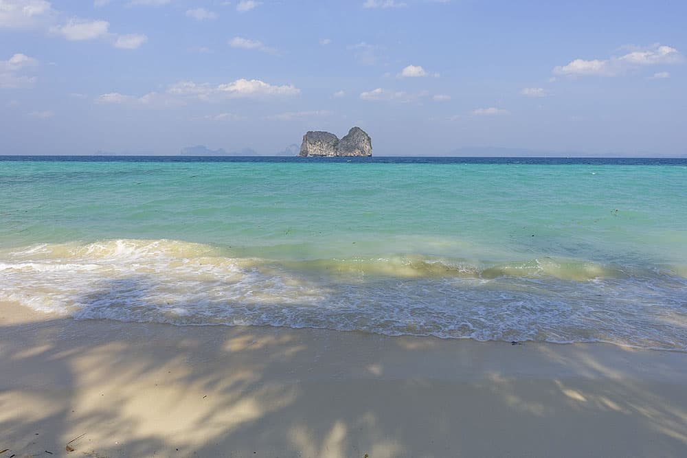 W podobnej cenie (a jeśli podróżujecie w kilka osób, to wręcz taniej) można zorganizować własną wycieczkę – opłacić łódź i wybrać się tam, dokąd Wam się zamarzy. Na własnych zasadach! Ja serdecznie polecam przynajmniej jednodniowy wypad na Koh Mook. Oprócz rajskich widoków i pięknych plaż, znajduje się tam niewielkie miasteczko, bo na wyspie mieszka niewielka muzułmańska społeczność. Są sklepiki, stragany z jedzeniem i owocowymi sokami, oczywiście salony masażu i wiele, wiele innych. Koniecznie wybierzcie się do szmaragdowej jaskini, my zatrzymaliśmy się tam po południu – było zdecydowanie mniej łódek (i ludzi!) niż o poranku. Przez dłuższą chwilę byliśmy tam sami – to było absolutnie niezwykłe doświadczenie.