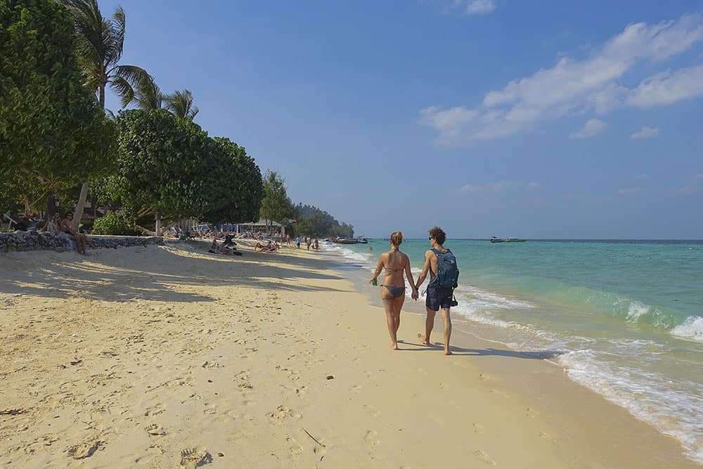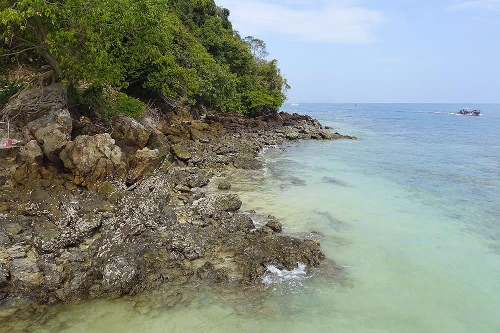 To bardzo proste pytanie – pieszo ;). Jeśli mieszkacie w jednym z hoteli na wschodniej części wyspy, spacer “do końca plaży” w jedną lub drugą stronę jest główną opcją. Natomiast jeśli zamarzy Wam się piesza wycieczka – jest wąska dróżka przez dżunglę, prowadząca do Paradise Beach. Odrobinę trzeba będzie się zmęczyć, głównie przez prawdziwy tropikalny klimat, jednak widoki i przeżycia rekompensują każde zmęczenie. Droga zaczyna się na tyłach Tanya Resort, dalej poprowadzą Was znaki. Koniecznie zabierzcie ze sobą wodę i preparat odstraszający owady. Nam przejście z jednej strony wyspy na drugą zajmowało 30-40 minut (w zależności od tego czy Tomek był Mili lektyką, czy panienka szła o własnych siłach ;)).