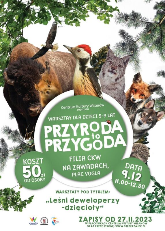 Zapisy na warsztaty przyjmujemy w placówkach Centrum Kultury Wilanów oraz przez stronę: https://www.strefazajec.pl/course/view/id/51364. Liczba miejsc ograniczona!