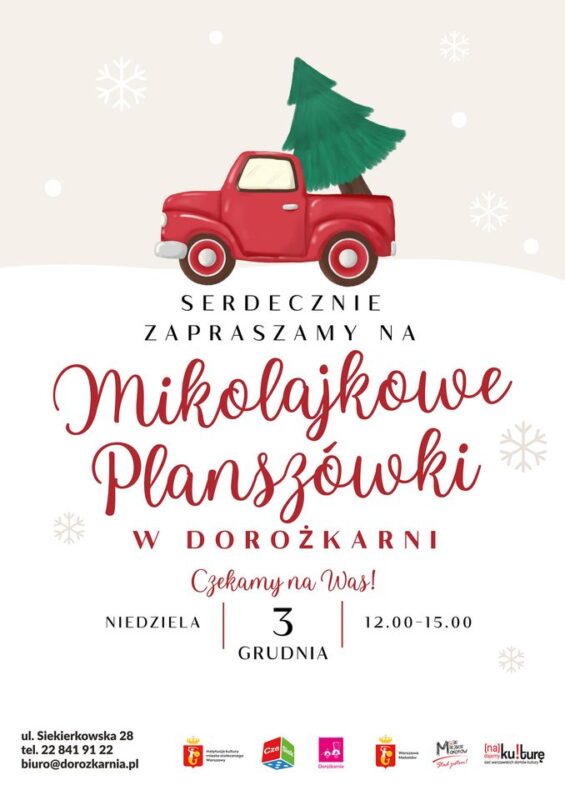 Zapraszamy na MIKOŁAJKOWE Planszówki w Dorożkarni! Z okazji zbliżających się Mikołajek wraz z DK Dorożkarnia oraz Wydawcami wspierającymi nasze planszówkowe spotkania przygotowaliśmy MIŁE NIESPODZIANKI! Ilość niespodzianek jest ograniczona, zatem warto być od początku 😉