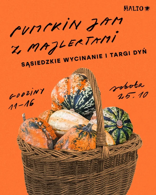 Jesienne święto dyni na Żoliborzu! 🍂 Wpadaj na rodzinne warsztaty z wycinania dyń, targ z przysmakami z Gospodarstwa Majlertów oraz pyszną zupę, ciasta i dyniowe specjały. Całość w ciepłej, sąsiedzkiej atmosferze przy muzyce i gorącej herbacie.