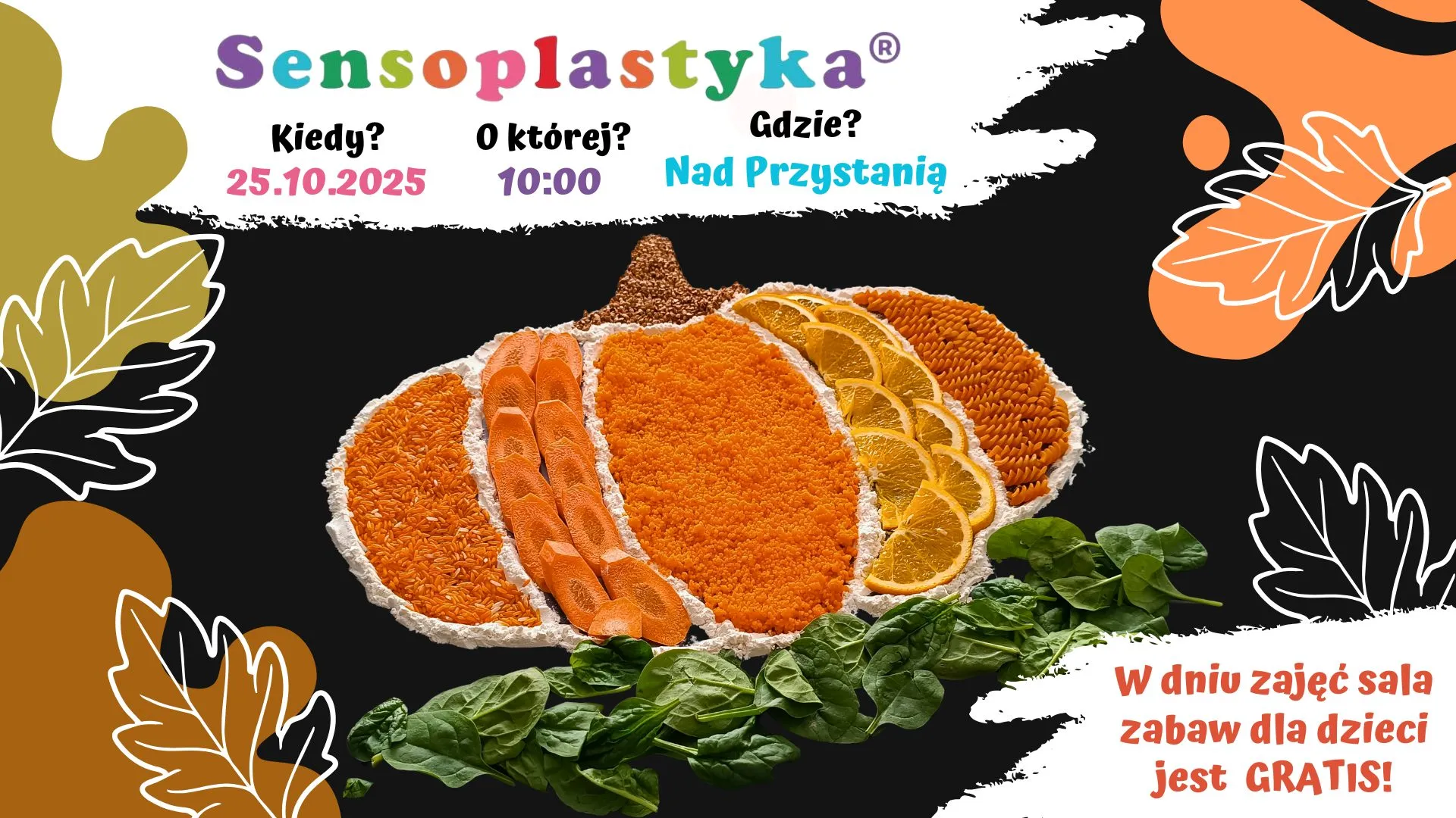 Na najmłodszych (od 9. miesiąca życia) czekają warsztaty sensoplastyczne w dyniowym klimacie – pełne barw, zapachów i zabawy w masach plastycznych. W dniu zajęć sala zabaw dostępna będzie gratis!