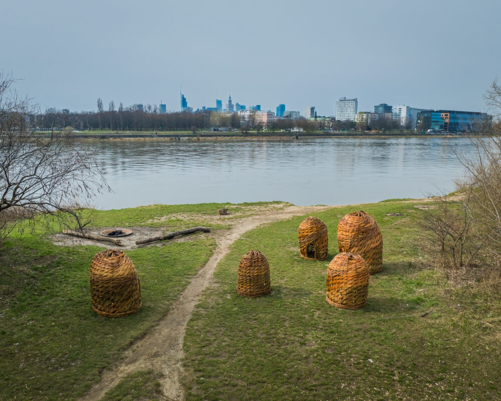 Janek spotkał się z Wami w grudniu w Przystani Warszawa i nauczył podstawowych wiklinowych splotów. Zaraz potem stworzył kopuły, które zdobią nadwiślański brzeg.