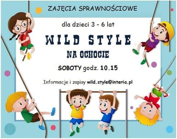 Wild Style to zajęcia, które pozwalają dzieciom rozwijać swoją sprawność i pokonywać własne ograniczenia. To zajęcia pomagające dzieciom wyrosnąć na szczęśliwych i zaradnych życiowo dorosłych. Wild Style to styl życia, w którym dzieci mają prawo być roześmianymi i pełnymi energii dziećmi przy jednoczesnym zachowaniu pozytywnej dyscypliny.